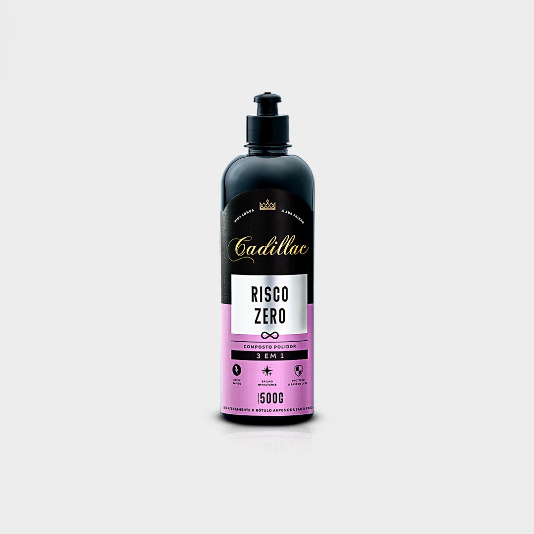 O risco zero 3 em 1 é o composto polidor all in one da cadillac®, que veio para cumprir 3 etapas de uma vez só: corte, brilho e proteção. Sua formulação possui o perfeito equilíbrio entre capacidade de corte e acabamento, sendo necessário apenas a mudança de boina, para alterar sua indicação. Possui cera de carnaúba para dar brilho e proteção. Sua formulação é a base d'água. É indicado para todos os tipos de pintura e repintura automotiva.