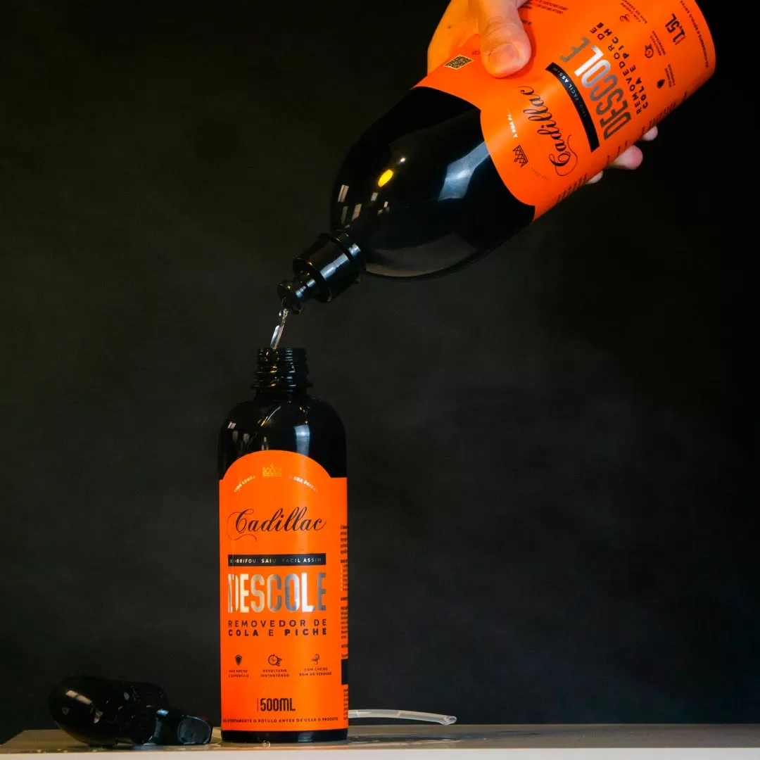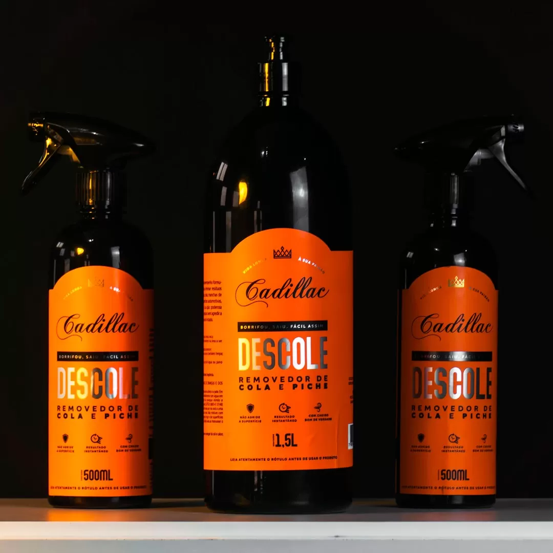 O Descole da Cadillac é um removedor de piche, cola e outros resíduos formulado com óleo de laranja, um solvente natural extremamente eficaz para eliminar resíduos difíceis e substâncias gordurosas do dia a dia.