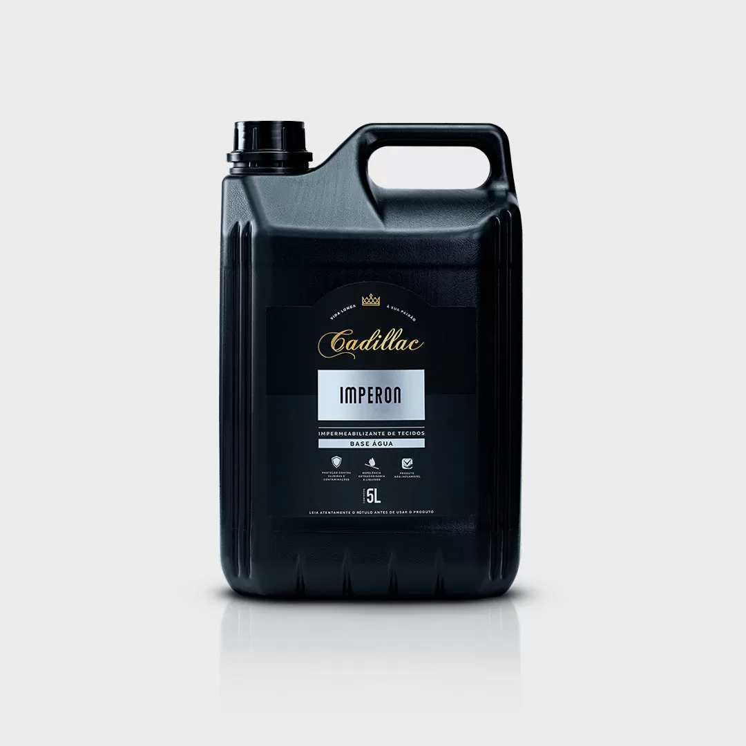 Descrição: O impermeabilizante de tecidos Imperon é a solução mais inovadora e segura da Cadillac, para proteção e hidrorrepelência de tecidos, como: estofados, suede, camurça, chenille, linho, etc. Sua formulação é 100% a base de água e não inflamável.